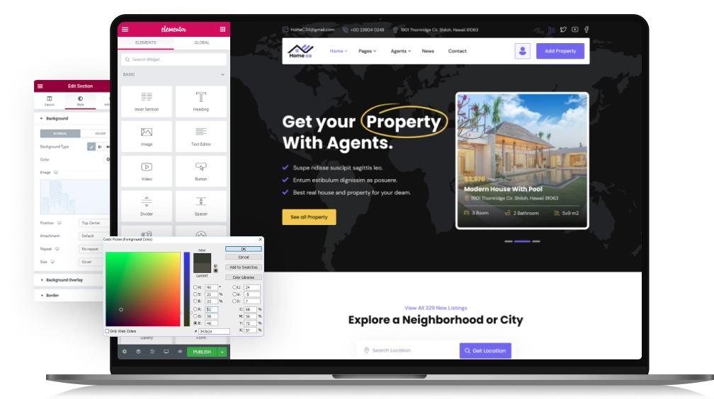 Build and customize every part of your website intuitively with Elementor’s visual builder. No coding required. Create flawless websites with custom positions, padding, margins, and global settings for colors & typographies.